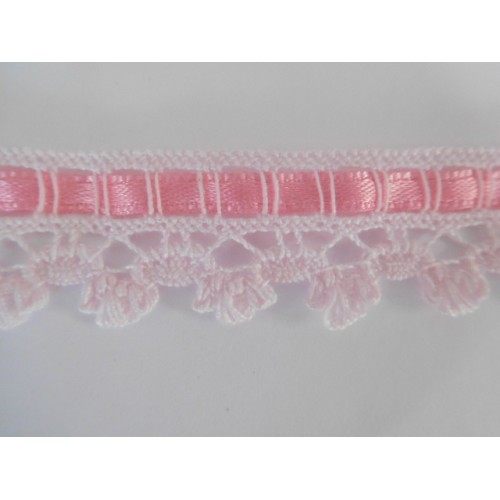 Tuotenumero: Puuvillapitsi ja satiininauha, vaaleanpunainen, leveys 2 cm
