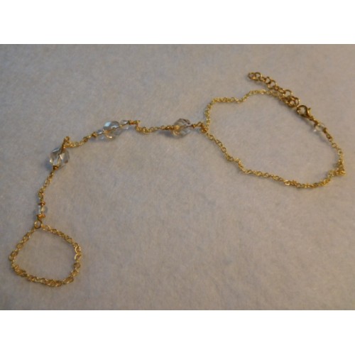 Koru kullanväristä ketjua ja kirkkaita lasihelmiä.