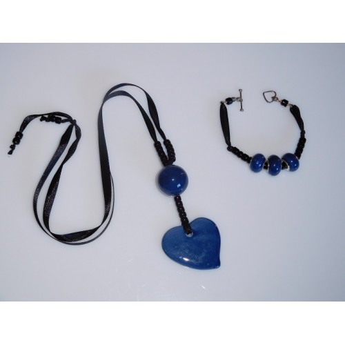 Kaulakorun pituus 72 cm + riipusosa 9 cm.Musta satiininauha,keraamiset ja lasihelmet.