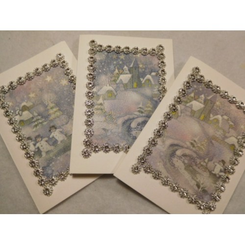 Käsintehdyt kaksiosaiset kortit.Tekstit:"Hyvää Joulua" ja "Iloista Joulua".
